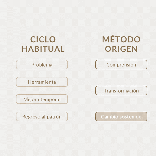 El cambio real ocurre cuando comprendes el origen de lo que sientes — no solo lo que ves en la superficie, sino las emociones, creencias y experiencias que lo sostienen.